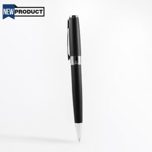 Aluminio, ABS, Acero. Boligrafo retráctil. Cuerpo revestido en laca de diferentes colores. Acabado mate. Pulsador, clip y puntera de color gris gun metal. Tinta negra. Amplia área de impresión.