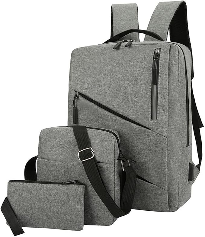 Set maletines. Incluye Backpack, bolsa correa larga y bolsillo de mano Backpack con salida para usb y audífonos. 3 compartimentos al frentr con cierre. Compartimento interior para laptop.