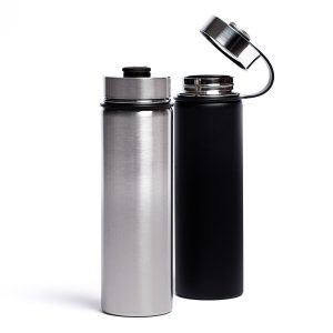 Botella de aluminio y gancho para colgar con capacidad de 750ml.