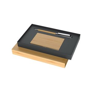 Set ejecutivo, incluye libreta tamaño A5, de 80 g y 100 hojas, bolígrafo. Set empaquetado en caja de regalo con diseño ejecutivo y espacio adecuado para guardar bolígrafo y libreta.