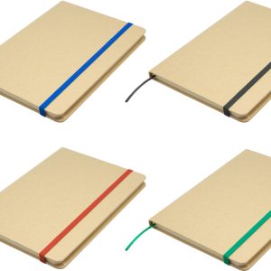 Libreta con tapa de algodón reciclado con 80 hojas (rayadas) de 70 g de papel reciclado, con resorte sujetador de pastas y separador de hojas. Esta libreta es una opción eco-amigable y práctica para tomar notas, escribir ideas o llevar un diario.