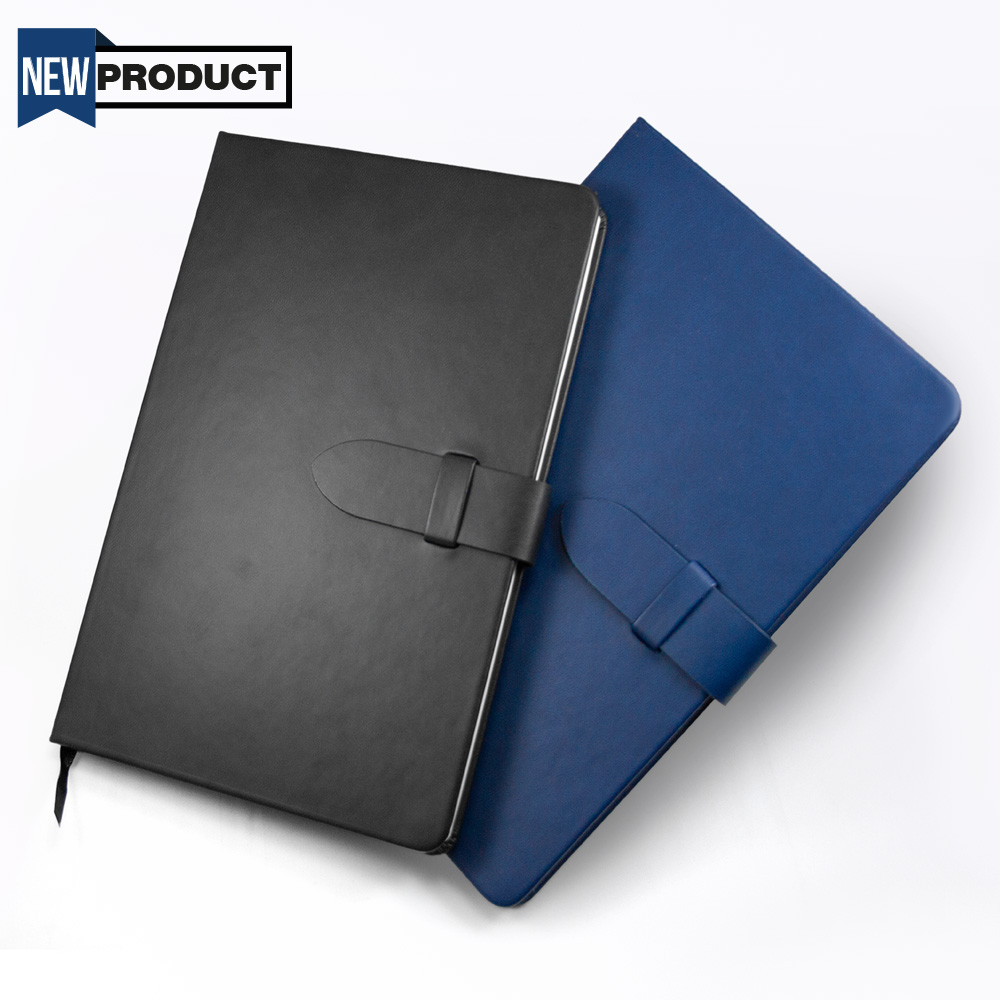 Libreta con cubierta de PU, separador, correa para cierre y 80 hojas rayadas.