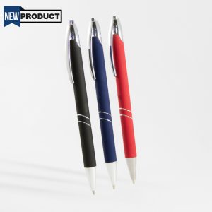 Plástico. Cuerpo blanco y clip de diferentes colores. Bolígrafo retráctil. Clip plástico de colores. Tinta negra. Sistema de botón push para destapar. Amplia área de impresión.