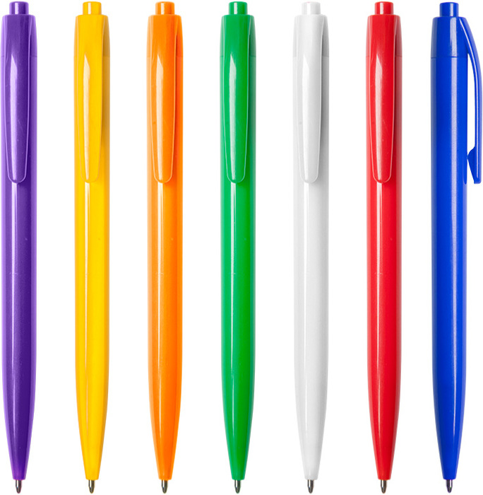 Plástico. Bolígrafo con cuerpo plástico de color con pulsador.