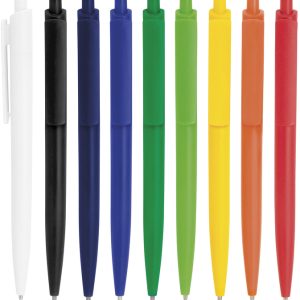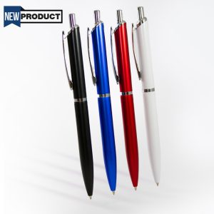 Metálico. Cuerpo color negro mate. Puntera, clip y anillo metálico. Apertura giratoria. En la parte superior destape electroplateado. Parte inferior texturada para mejor agarre. Tinta negra. Recarga metálica. Presentación en caja de regalo.