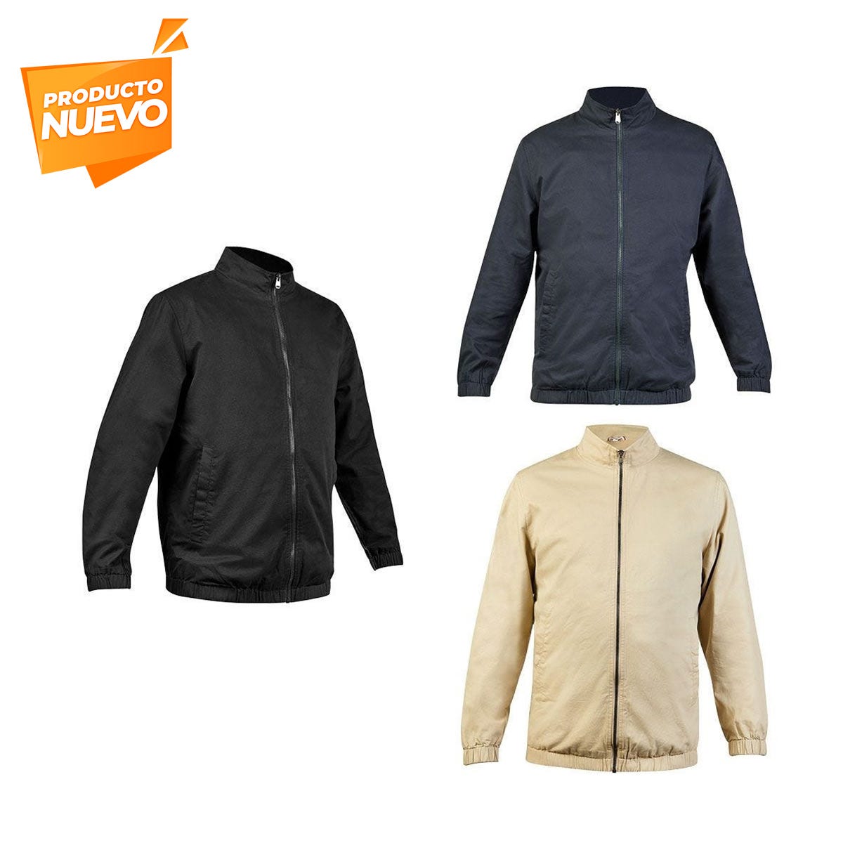 Chamarra casual. Cuenta con cierre metálico y elástico para ajuste en muñecas y cintura. Fabricada con material tipo gabardina, exterior 100% algodón y forro 95% poliéster – 5% algodón. Incluye 2 bolsillos exteriores con botón metálico y 1 bolsillo invisible en la parte interna